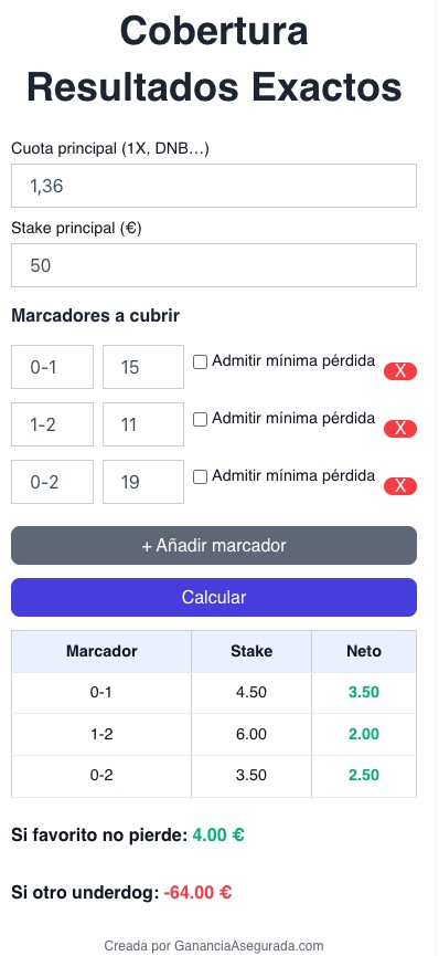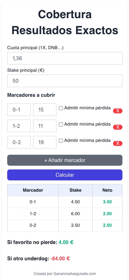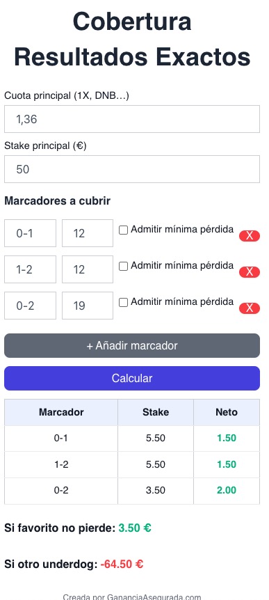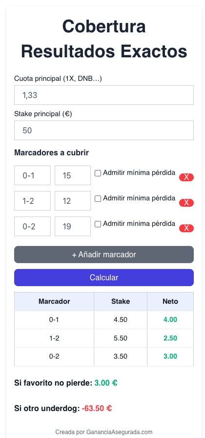 Si alguna cuota falla tus umbrales → olvídalo o ajusta a 2 coberturas.